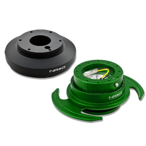 NRG-SRK-175H+650GR, NRG Innovations Steering Wheel 6-Hole Aluminum Ball Bearing Short Hub Adapter with Gen 3.0 with Handle Green Quick Release SRK-175H?NRG Quick Release features many options that conventional ball-locking quick release system do not. It is specially engineered with raised sections to prevent the scratching and stretching of the hub while a self locking feature adds increased safety and functionality. Features racing styled for added style and look. Each unit is made from the highest quality aircraft grade aluminum and is anodized for maximum durability and finish.