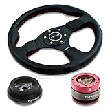 | ✚✚✚ NRG-SRK-120H+012R+200PK, NRG Innovations 12.5" 320mm Black Leather Red Stitch Button Racing Steering Wheel Combo with 6 Hole Short Hub Adapter with Gen 2.0 Pink Quick Release Kit SRK-120H NRG Quick Release features many options that conventional ball-locking quick release system do not. It is specially engineered with raised sections to prevent the scratching and stretching of the hub while a self locking feature adds increased safety and functionality. Features racing styled for added style and look. Each unit is made from the highest quality aircraft grade aluminum and is anodized for maximum durability and finish.